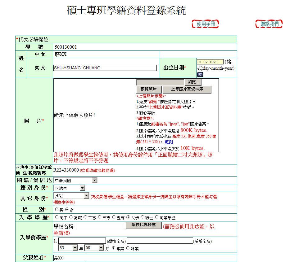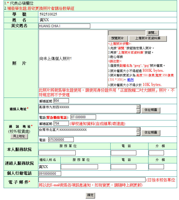1.需上傳照片,以提供製作學生證